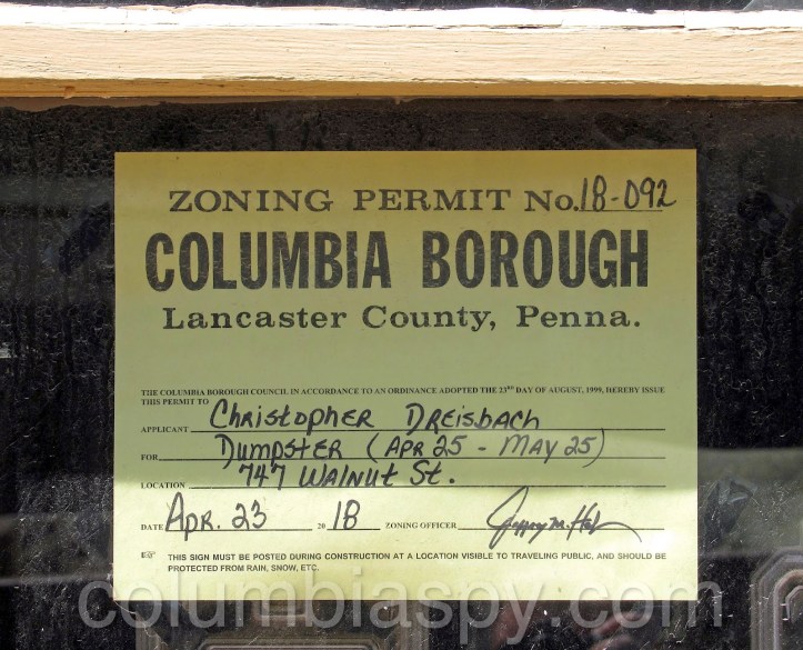 And on April 23 according to the photo posted at Columbia Spy‘s article about one part of the Monday night meeting (Columbia to get recovery house. Who knew? Just a few!), the zoning permit was issued.