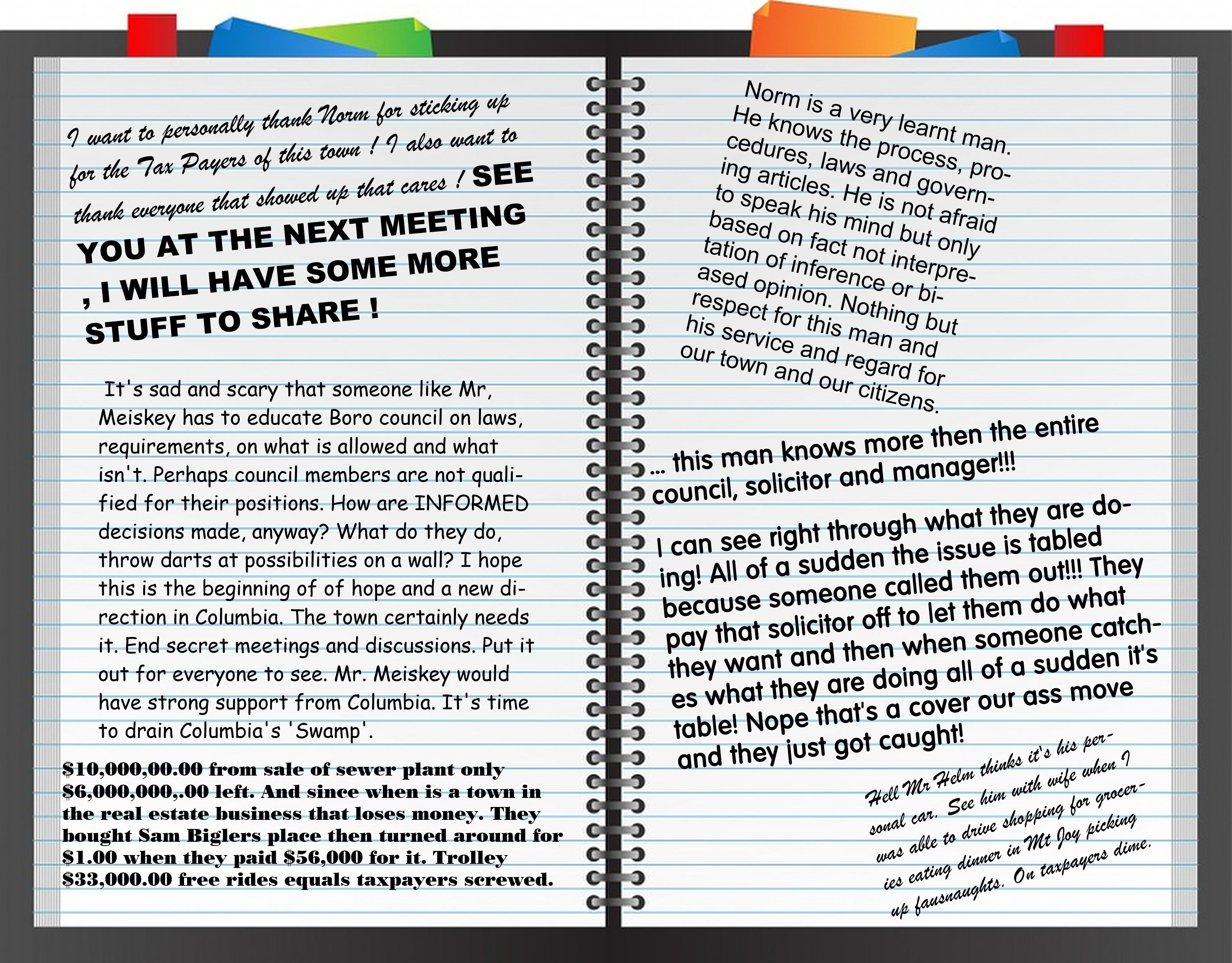 Local facebook pages are lighting up with comments and posts about former borough manager, Norm Meiskey’s remarks at the Monday night council meeting. Columbia Spy‘s article is a comprehensive assessment of his comments.