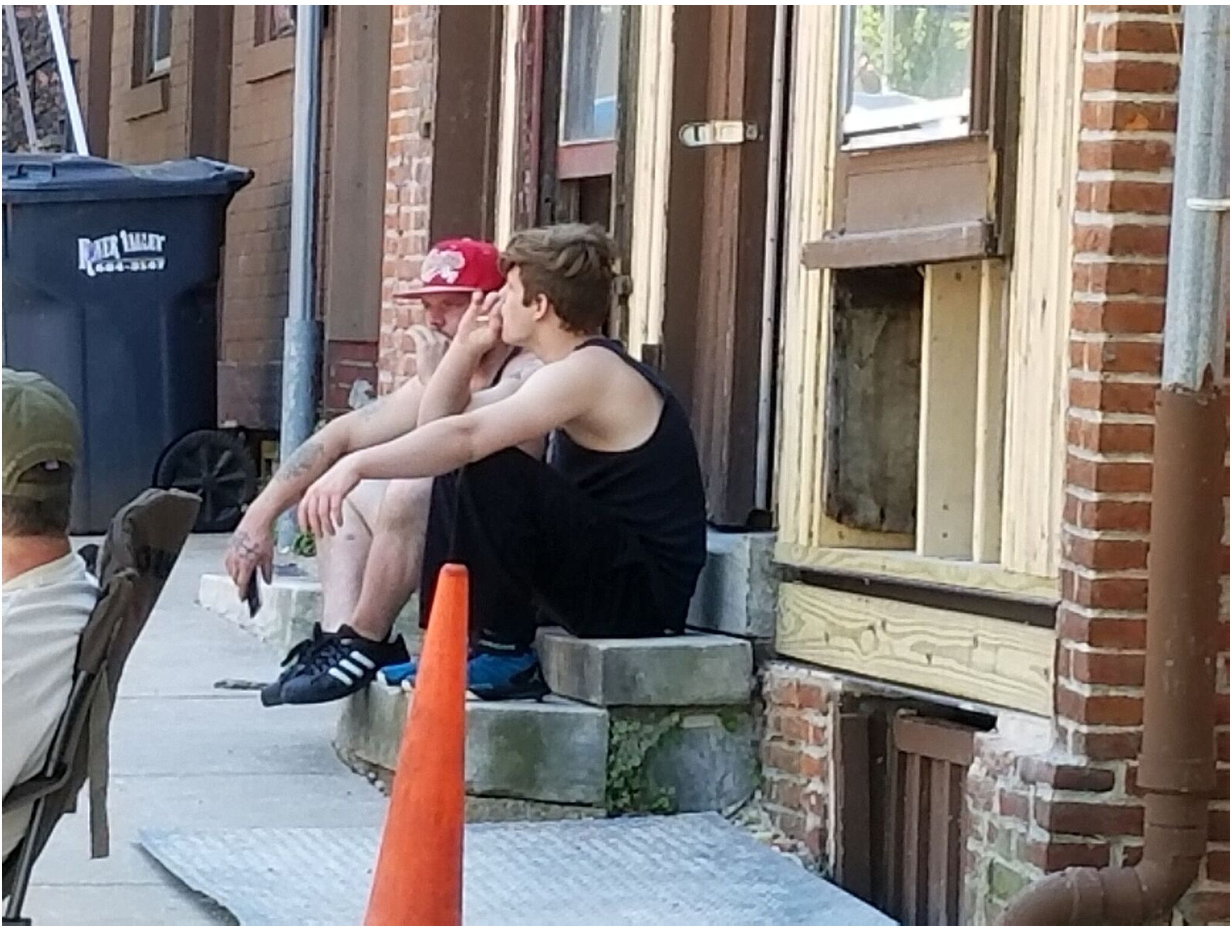 Lots of folks sought relief from the midday sun and could be found in the shade sitting on stoops or chairs. Though we’re not advocating sitting on the stoops of a once-condemned — now being rehabed — structure on Locust Street.