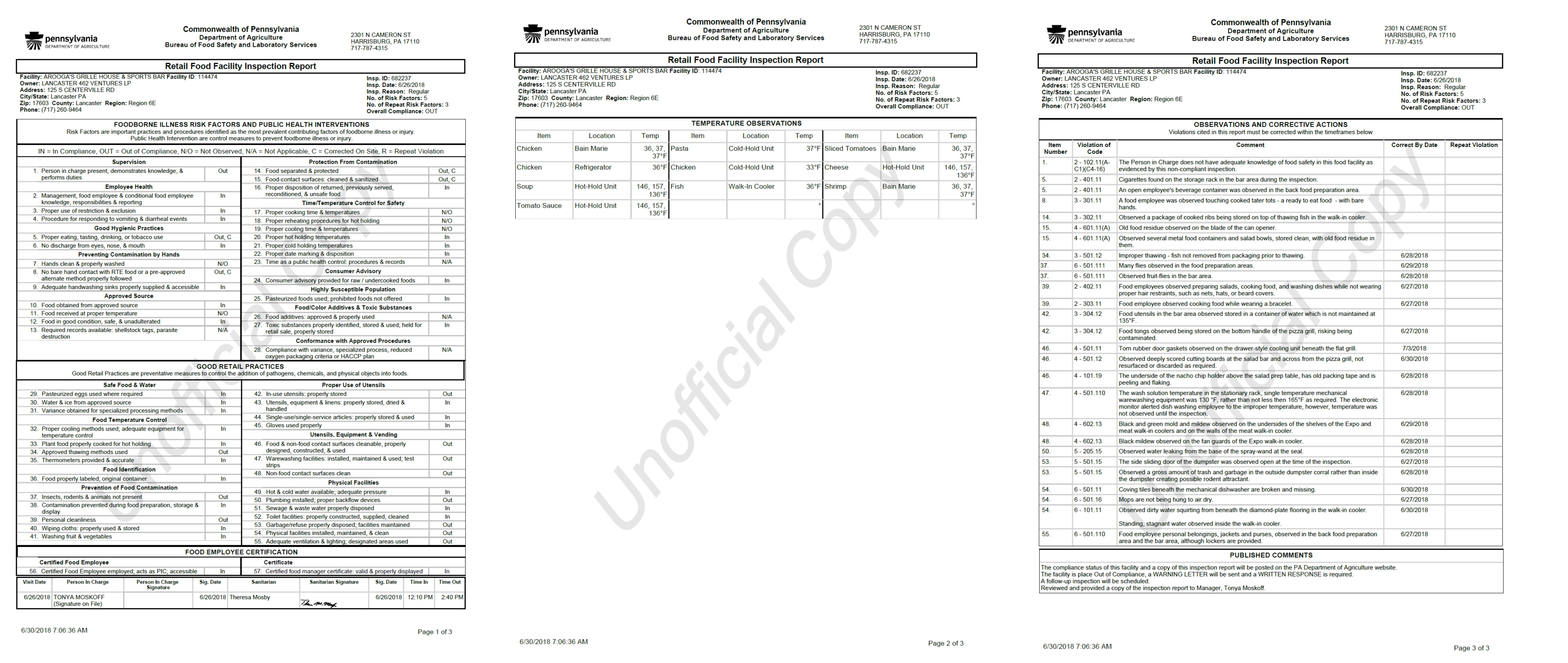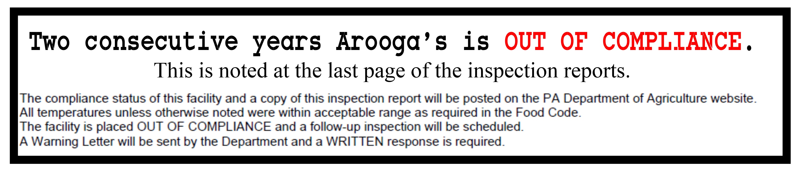 Here, for example, are the most recent inspections of Arooga’s and Arooga’s in 2017.