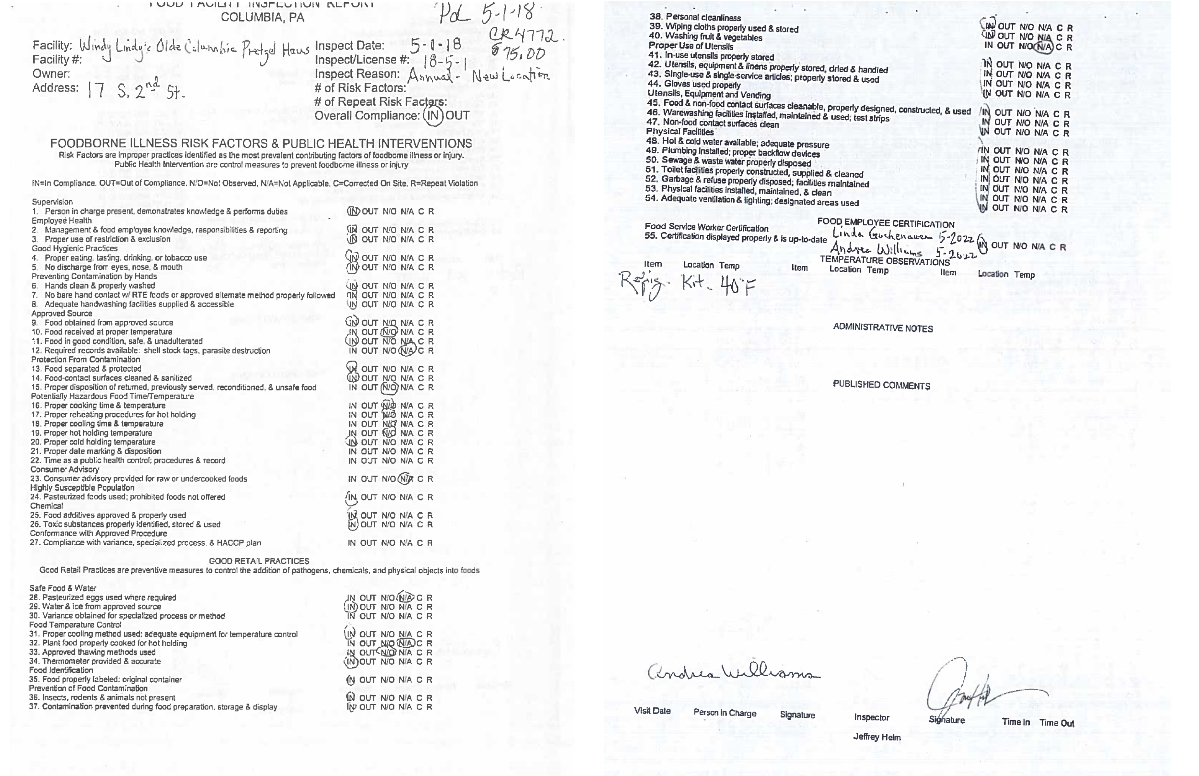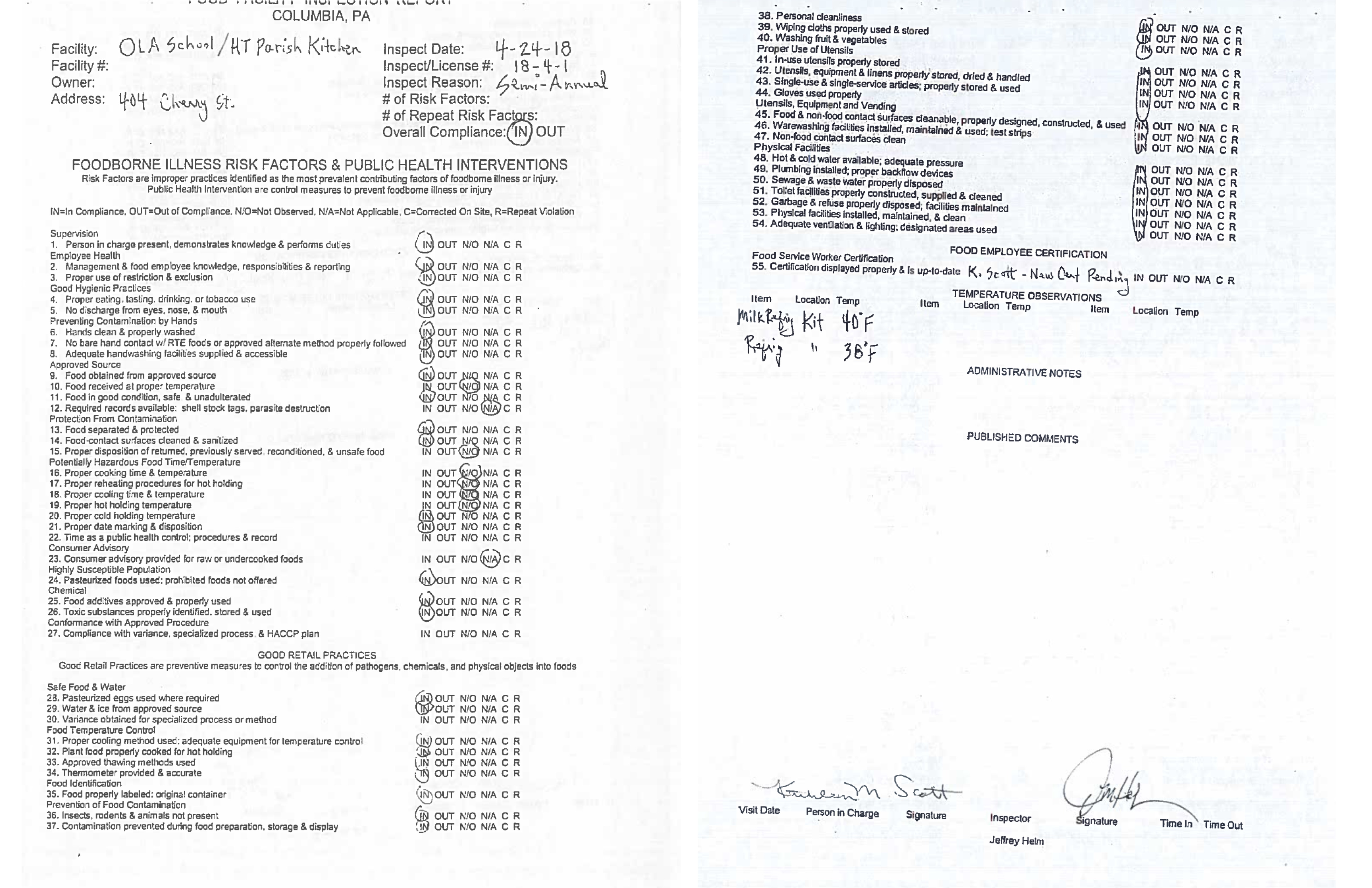 Columbia news, views & reviews asked the Borough for copies of inspections conducted in the Borough during April and May 2018. We received these inspection forms.