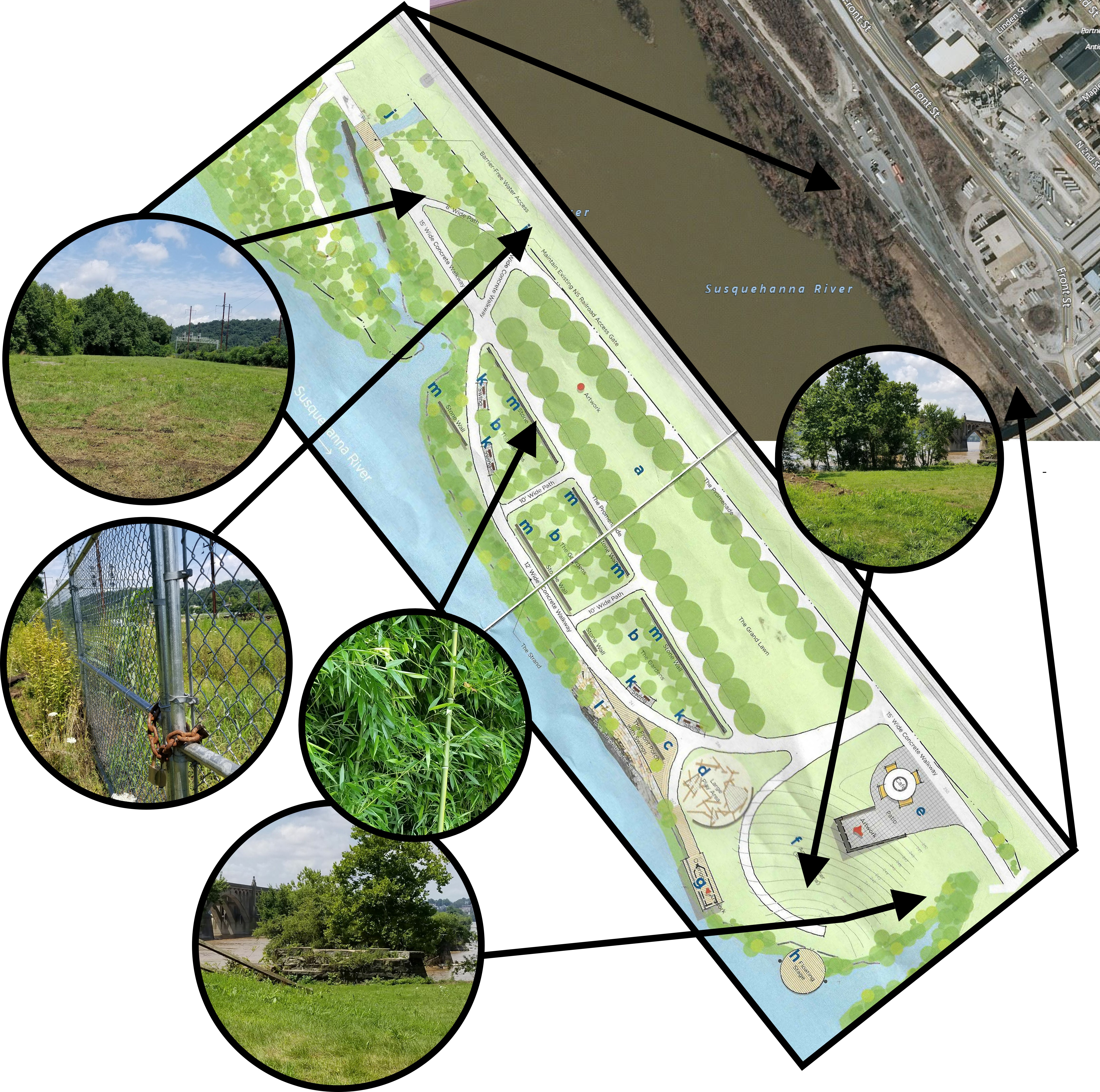 For perspective, we’ve aligned a sketch of one of the concepts with a Bing Maps aerial. Then we’ve roughly placed photos from today pointing to the approximate site on the concept map.