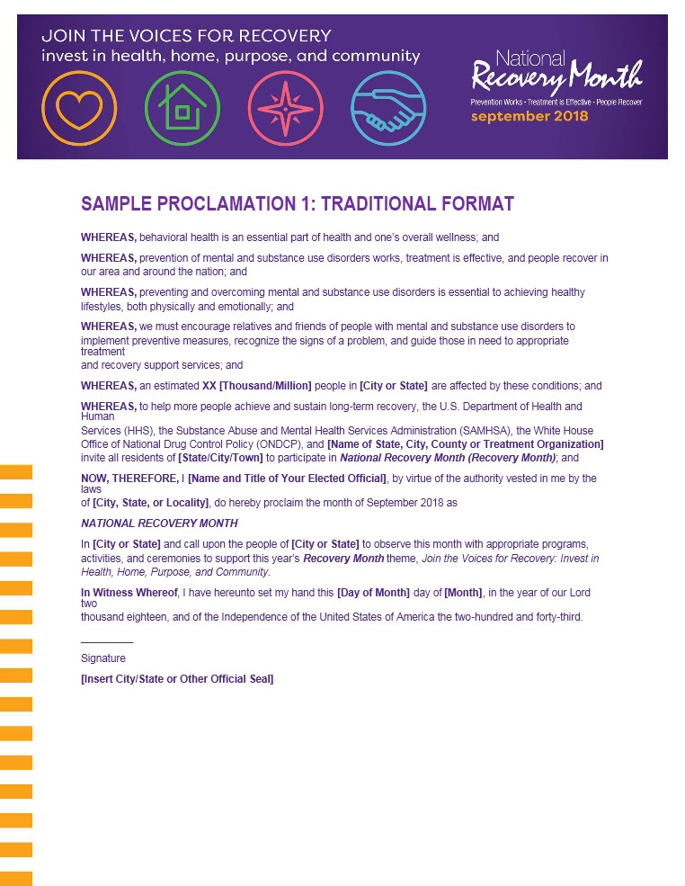 At last night’s council meeting, the mayor read a proclamation attesting to the borough’s recognition of National Recovery Month. “Each September, the Substance Abuse and Mental Health Services Administration [SAMHSA] sponsors National Recovery Month (Recovery Month) to increase awareness and understanding of mental and substance use disorders, and celebrate the individuals living in recovery. Now in its 29thyear, the 2018 Recovery Month observance focuses on urban communities, health care providers, members of the media, and policymakers, highlighting the various entities that support recovery within our society.”