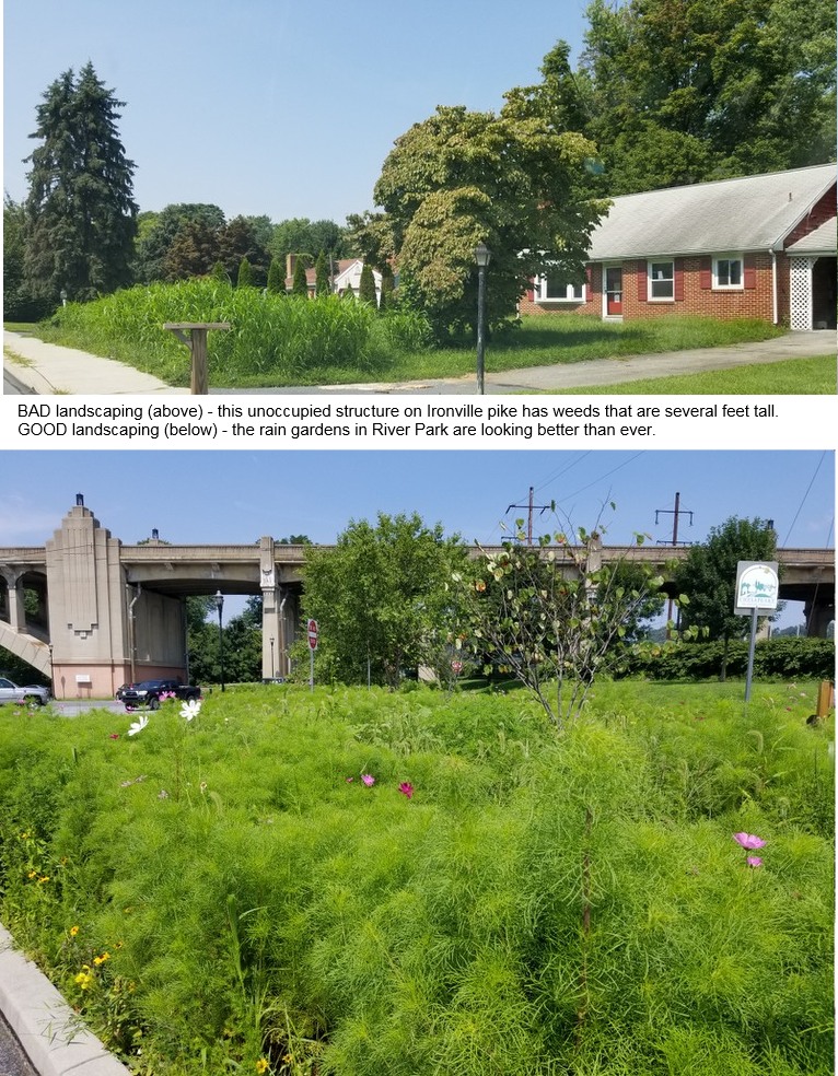 Landscaping …it’s tough keeping even with lots of rain, high humidity and heat producing record weeds. But overwhelmingly Columbians seem to keep up — there are a few malingerers.
