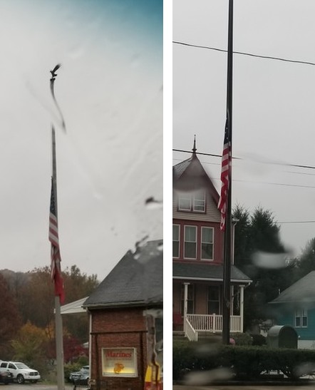 The Columbia Borough School District and the Marine Corps League shows respect for the United States Flag, and displays homage to those murdered in California, by lowering its flags to half staff (below).