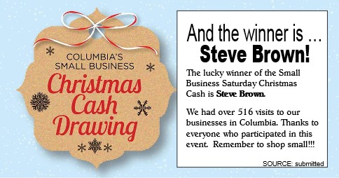 November 27, 2018 17512 Columbia Columbia’s Small Business Saturday Christmas Cash Drawing winner is Steve Brown! Here’s the video of the just completed random drawing. Share this: Click to share on Facebook (Opens in new window) Facebook Click to share on X (Opens in new window) X Like Loading... Related