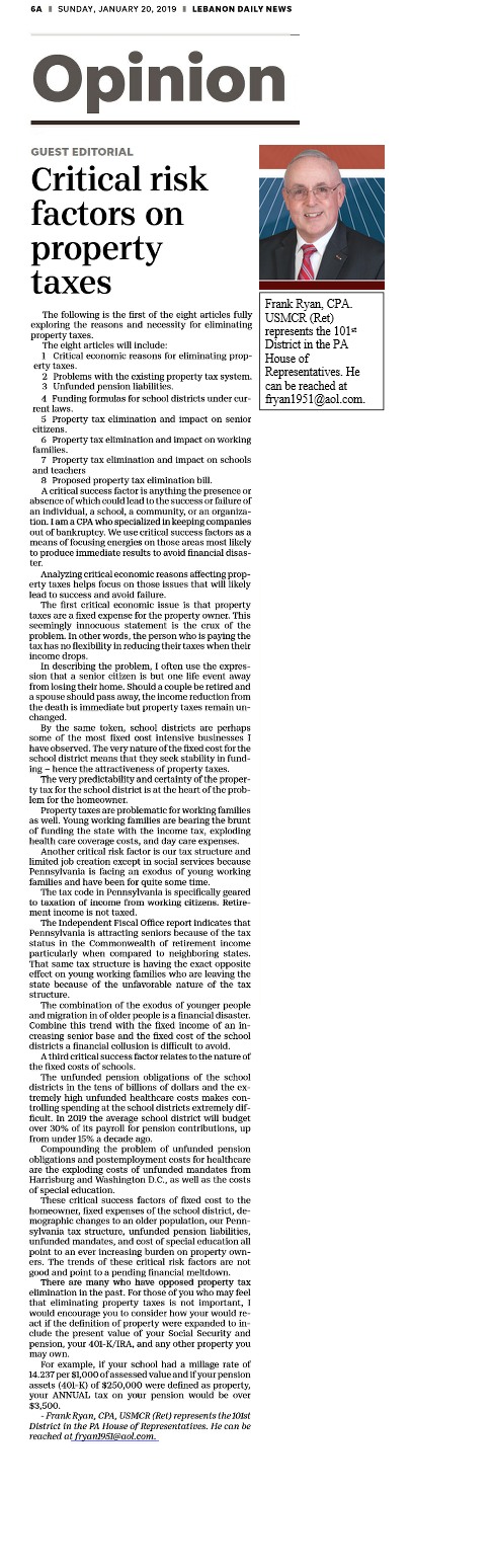 We’ve posted articles and columns from The Lebanon Daily News in the past; here’s another: a guest editorial’: “Critical risk factors on property taxes”