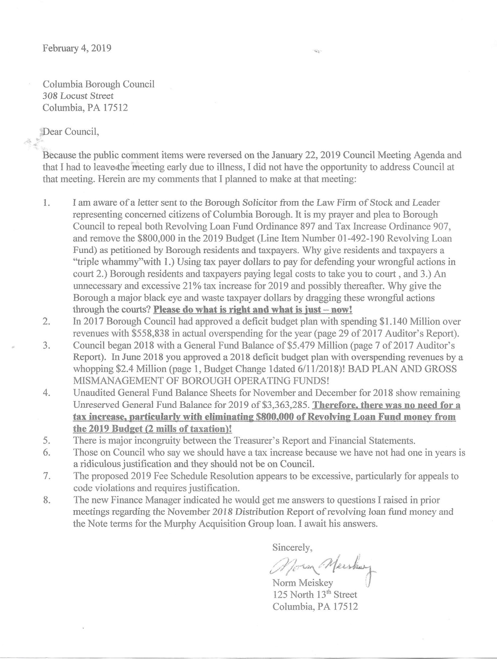 February 6, 2019 17512 Columbia A letter presented to the councillors at last nights work session council meeting Share this: Click to share on Facebook (Opens in new window) Facebook Click to share on X (Opens in new window) X Like Loading... Related