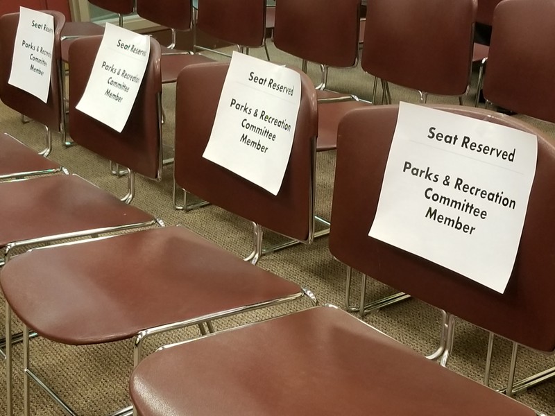 Reserved seating | Seating was reserved for members of Columbia’s Parks and Recreation Committee’s Advisory Board as representatives from YSM Landscape Artists unveiled proposed plans for three parks in Columbia: Jansens Park • Rotary Park and Makle Park.