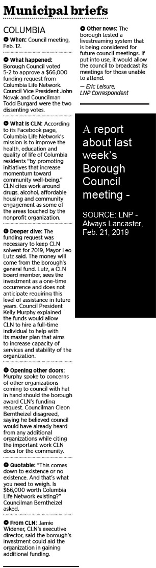 Columbia’s the only Customer | but the Land Bank Authority “has had discussions with Lancaster Township” according to the December 2018 meeting minutes.