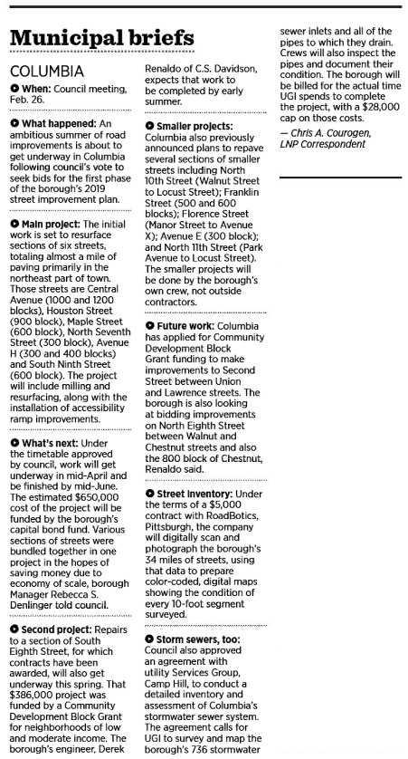 Last week’s council meeting briefs | This report is written by a different Lancaster Online correspondent. Chris A. Couregon is a experienced newspaper reporter who’s written for the Harrisburg Patriot-News. He’s also got significant municipal government experience; he’s been a borough manager in Duncannon and a communications director in Middletown.