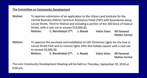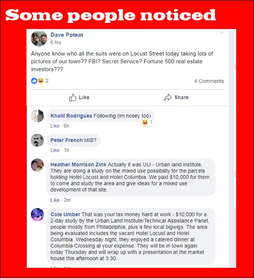 an agenda item from last July |An agenda item shows: “The Committee on Community Development – ULI Technical Assistance Panel (TAP).” Are you disappointed there was no news at the Borough’s Website and / or facebook communication outlets that mentioned the in-town presence of a folks representing the TAP yesterday and today?