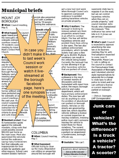 From the Municipal Briefs extracted from the article in today’s LNP – Always Lancaster