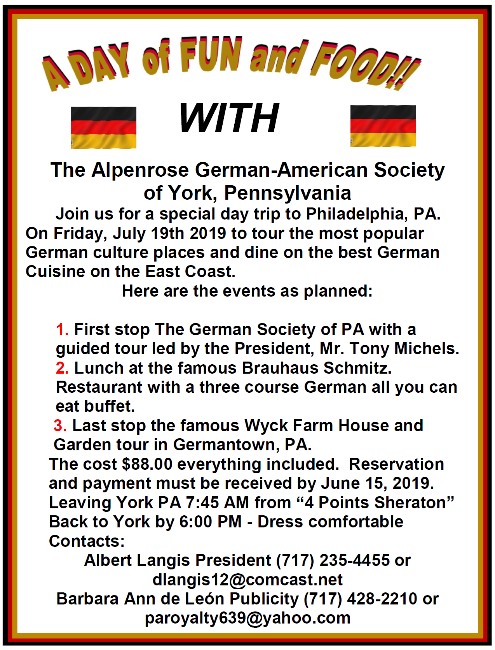 May 11, 2019May 10, 2019 17512 Columbia Take a day trip with the Alpenrose German-American Society of York Share this: Click to share on Facebook (Opens in new window) Facebook Click to share on X (Opens in new window) X Like Loading... Related