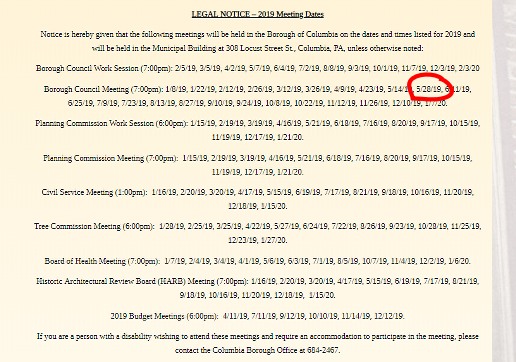 Tuesday’s agenda | Columbia Borough Council Regular Meeting 05-28-2019 Agenda and Meeting Packet-w-o 2018 Audit