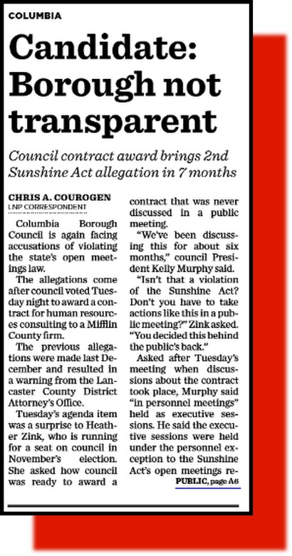 Overruled | That’s the ruling for the Columbia Concerned Citizens Association’s lawsuit against the Borough of Columbia’s defense of back-room decision. For those who want to read the Application of Edward G. BIESTER, Jr decision, click here.