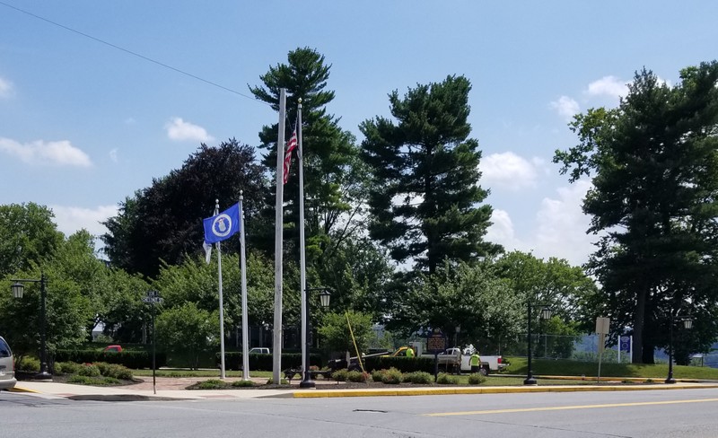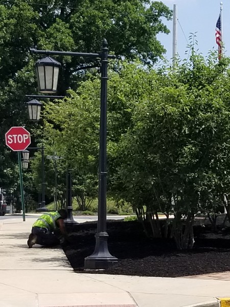 Thank you. Borough crews were tidying up the Veterans Plaza gateway landscape last recently on a really hot day.