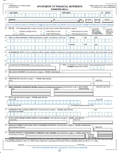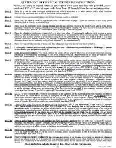Page 2 of the form provides block-by-block instructions about what must be entered on the statement. It, too, is pretty straightforward. Essentially, it says, be honest about your finances … identify your income streams (above certain thresholds); identify your creditors (again, above certain thresholds) and disclose your affiliations which could be construed as conflicts of interest.