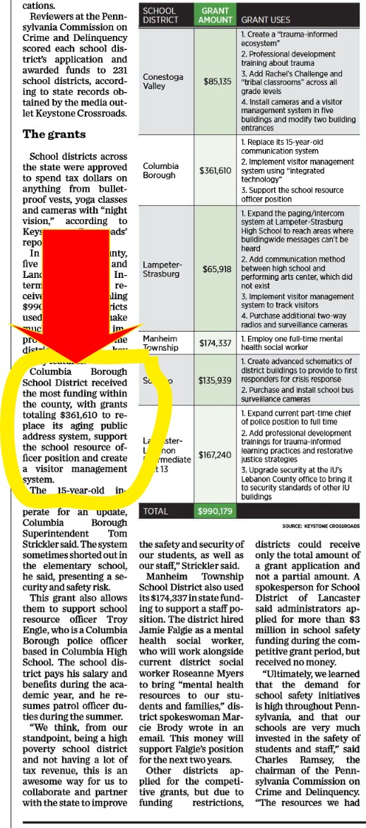 Corporate welfare isn’t limited to business directly | Several articles in today’s LNP – Always Lancaster are rife with state government handouts to benefit Columbia. One article, “State helps schools in county hike security” includes a mega-grant to shore up the school district’s security. Another is “Columbia project gets $1.75M boost from state; Grant to help fund renovation of Market House, parking upgrade.” When people gripe, complain and condemn real people for being government welfare recipients, they ought to complain about government handouts to all.