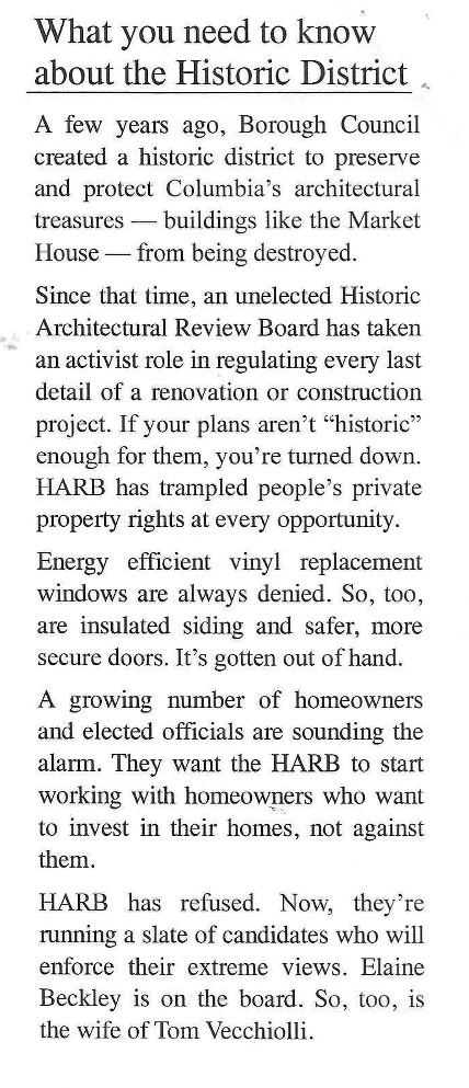 But there’s another consideration, Columbia Borough had established a H.A.R.B. and enacted legislation supporting it.