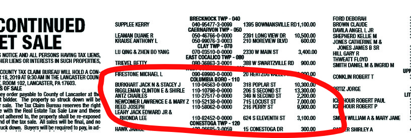 The Tax Upset Sale list in in today’s LNP – Always Lancaster | What’s a tax upset sale?