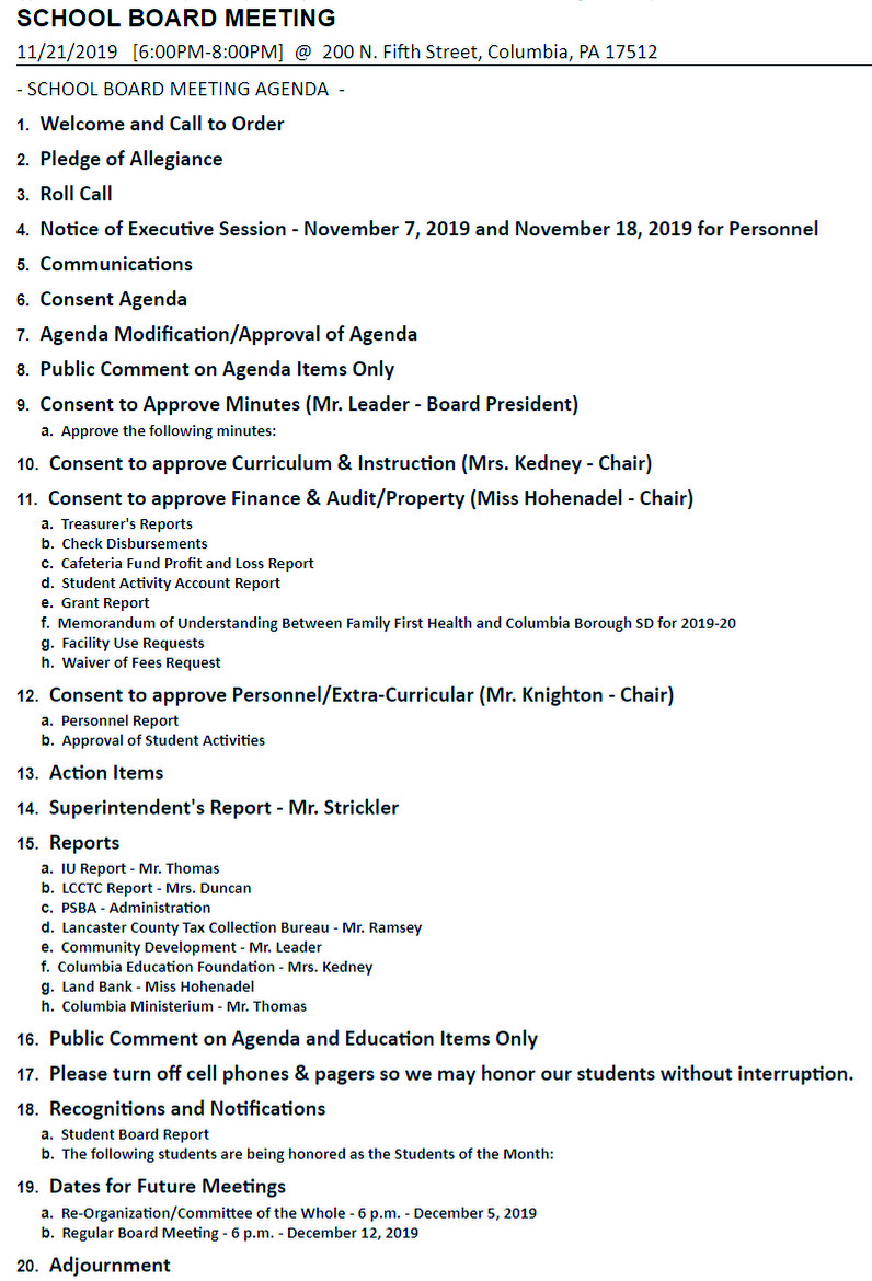 Thursday evening | School Board of Directors’ meeting agenda is posted at the School District’s Website. Also posted there are .pdf attachments relative to several of the agenda items.