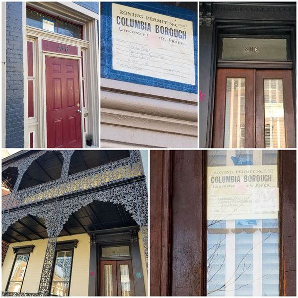 There are a slew of zoning permits plastered on buildings along Locust Street. Is it not reasonable to assume that the zoning permits should be readable by interested parties? How’s that possible when it’s posted high atop the door transom at the top left property?