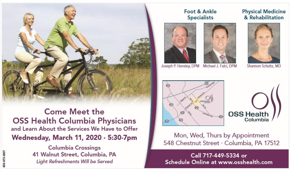 Join us for the opportunity to meet the physicians of the OSS Health Columbia location on Wednesday, March 11, 2020 from 5:30 – 7:00 p.m. at 41 Walnut Street, Columbia Crossings, Columbia. Light refreshments will be served. The general public and businesses are invited to attend.