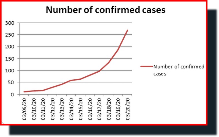 Confirmed cases spiral | The number of confirmed cases of COVID-19 in the state continues its upward spike. Numbers from the state Department of Health Website.