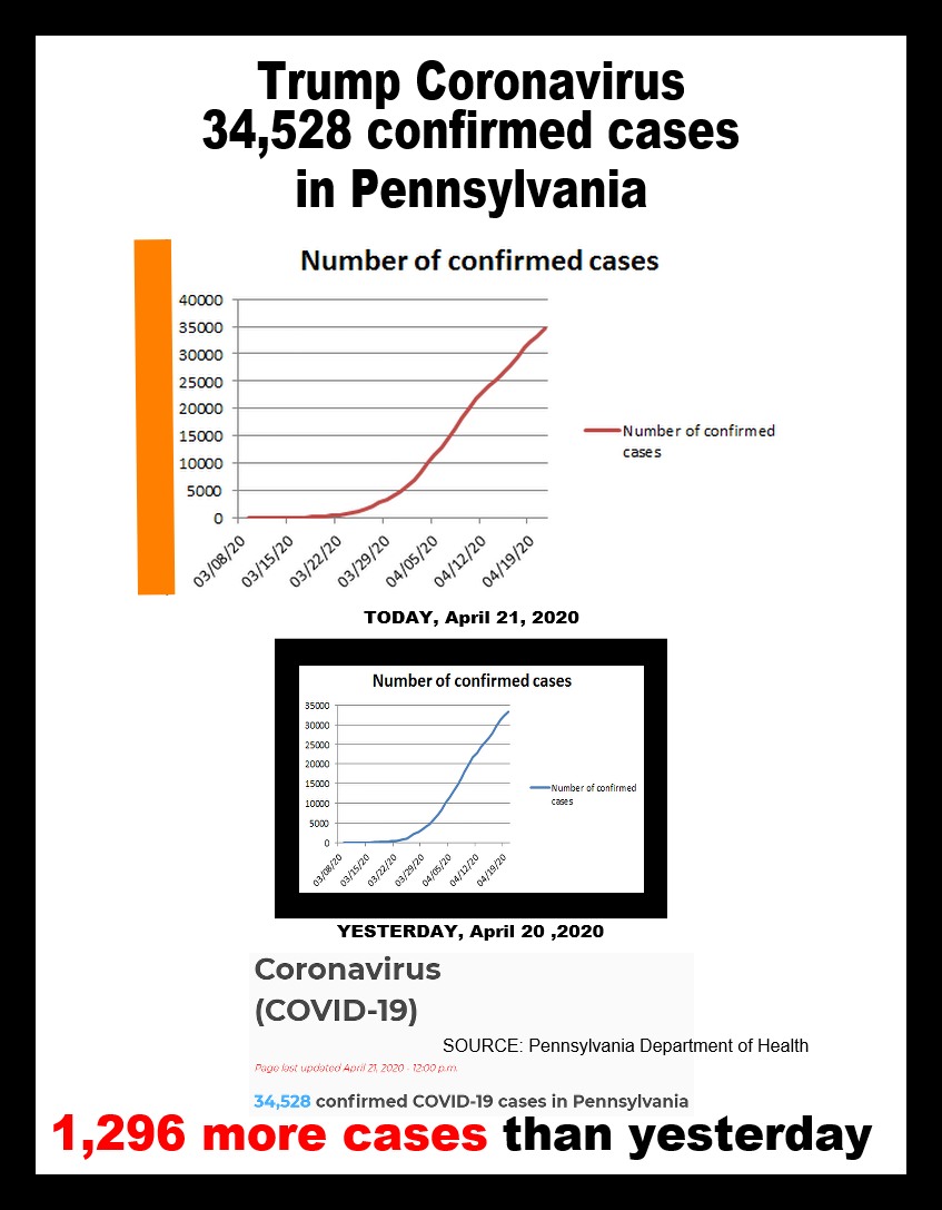Trump Coronavirus cases report in Pennsylvania today (April 21, 2020)