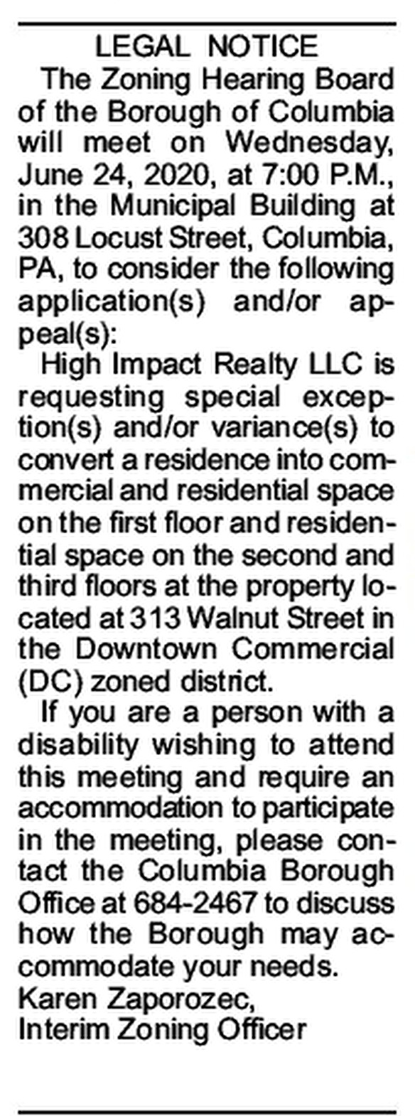 Click on the graphic to enlarge | The above LEGAL NOTICE appears in today’s LNP – Always Lancaster … but is not shown at the Borough Website.