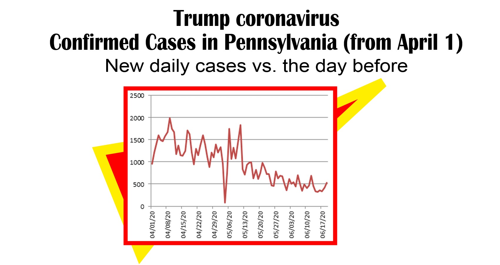 Trump Coronavirus cases reported in Pennsylvania, June 19, 2020 … and up again.