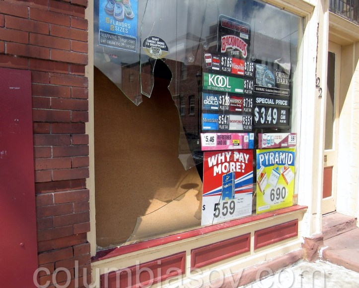 “On Sunday, June 21, 2020 at or about 1:53 am, a burglary occurred at Stover’s News Agency located at 24 N. Third Street in Columbia.  Two subjects approached the business from the front and broke the front store window with a brick.  A third subject was noted to be standing in the area and looked to be serving as a lookout.  The two subjects that approached the store entered the store through the window after breaking it and stole several items.”
