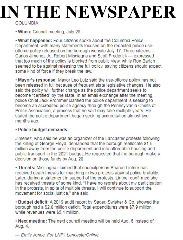 Countywide distribution | The above summary report about the most recent borough council meeting is in today’s LNP – Always Lancaster. Click on the graphic to enlarge it. The working agenda and accompanying packet are posted at the Borough Website.